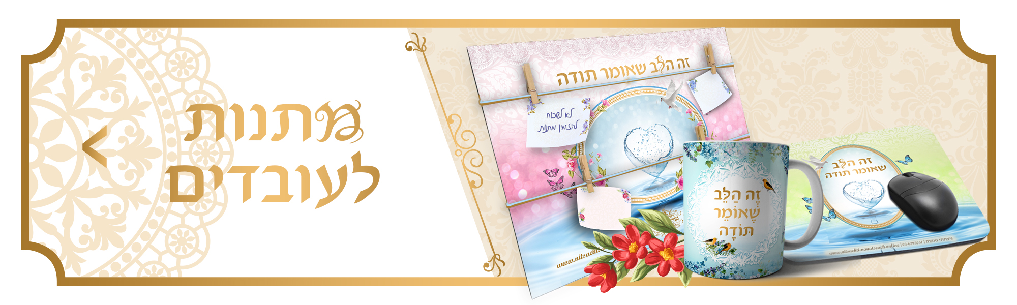 מתנות לאירועים ושמחות אנו בניצחתי ואנצח דואגים לשמח לא רק את בעלי השמחה, אלא גם אתכם. אתם מוזמנים להתרשם ממגוון מתנות לאירועים, מתנת יום הולדת, מתנה לאישה, מ מתנות יחודיות המעבירות משמעות ומסר אישי הישר מהלב שלכם לאהוביכם.