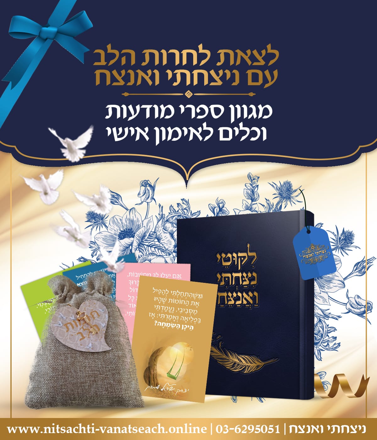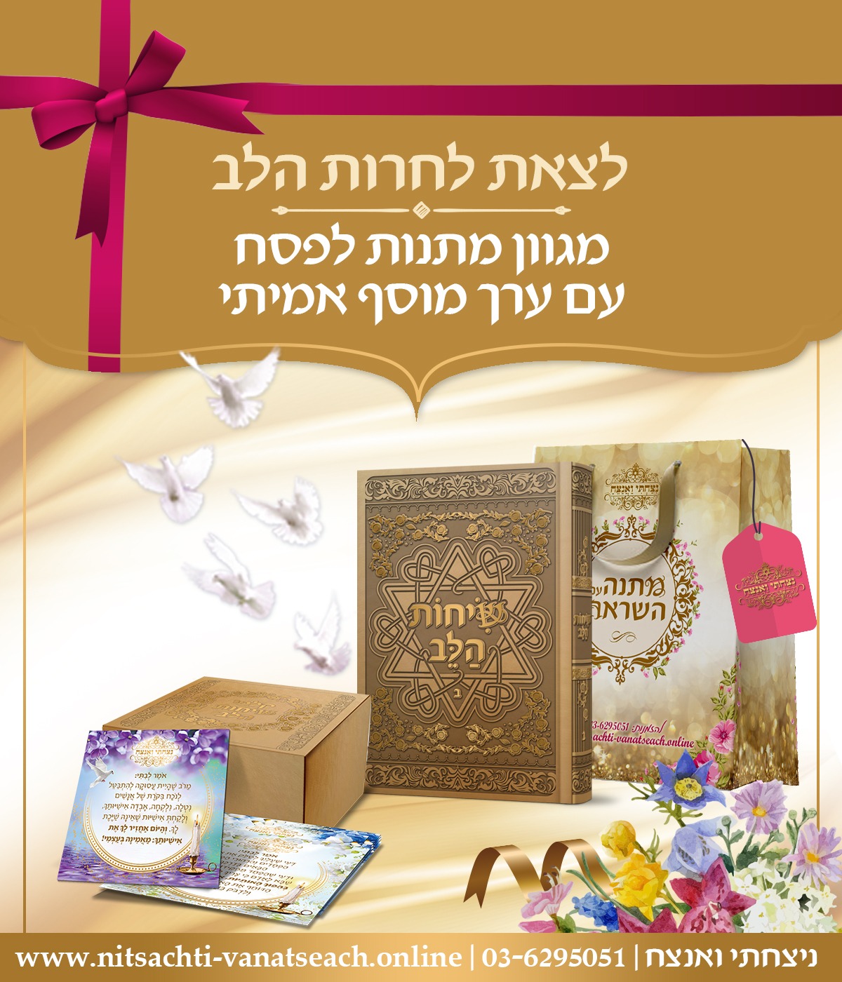 מארזים לחג עם מתנות לפסח מקוריות מסדרת "לצאת לחרות הלב" עם מארזי יין מפוארים שיקשטו לכם את שולחן החג ועוד מגוון מתנות מרהיבות לפסח! וכמובן – המתנה המושלמת לחג ולחיים – הספר ניצחתי ואנצח במארז חגיגי מיוחד לחג!